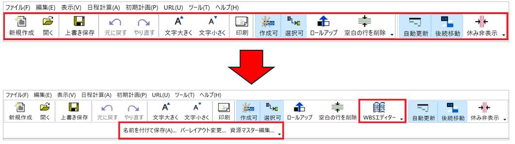 今回は工程's の、ツールバーの表示項目の変更方法をご紹介いたします。