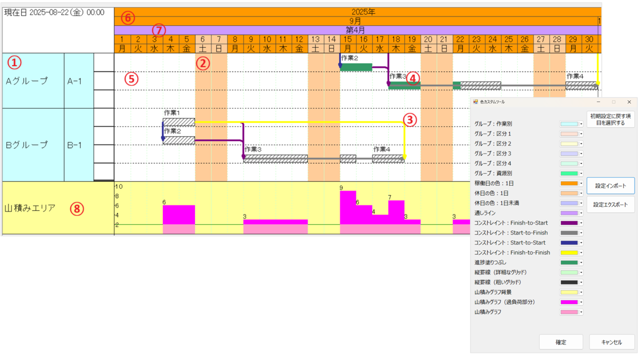 工程'sで作成した工程表の「グループ」「休日」「進捗」・・等の色変更がしたいと思ったことはありませんか?