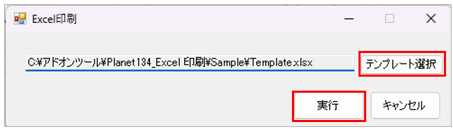 例)本ツールを「C:\アドオンツール\Planet134_Excel印刷」内に配置している場合