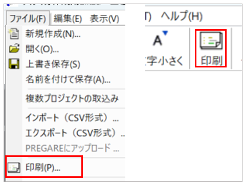 ①[ファイル]>[印刷]またはツールバーの[印刷]アイコンをクリックします。