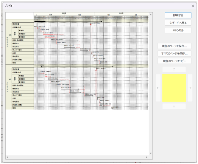 工程表は線と文字が主体のため、EMFで出力すれば拡大・縮小や印刷の際にも線や文字が常にシャープに保たれます。