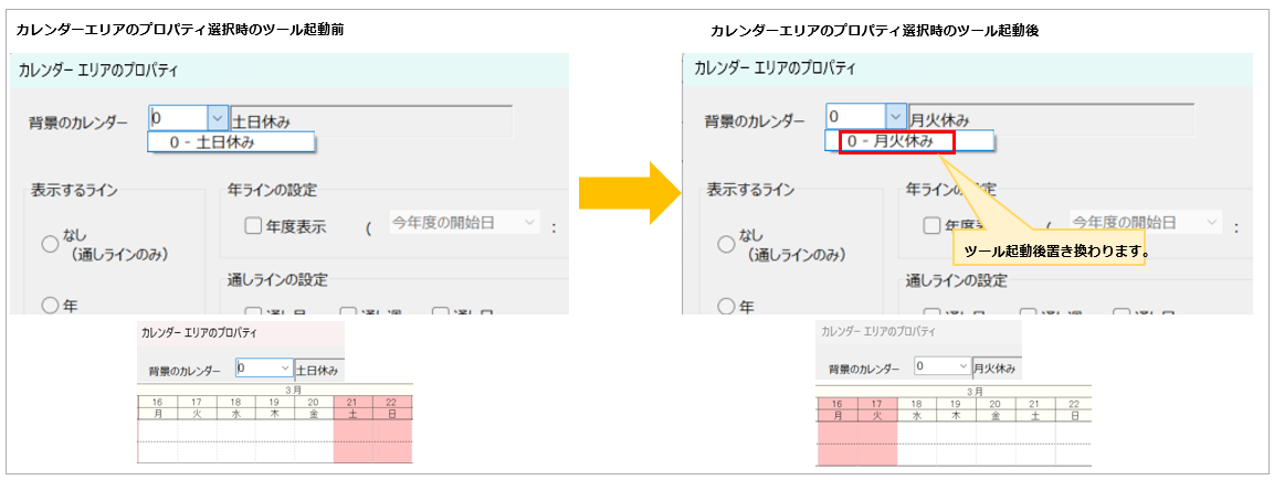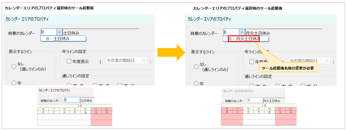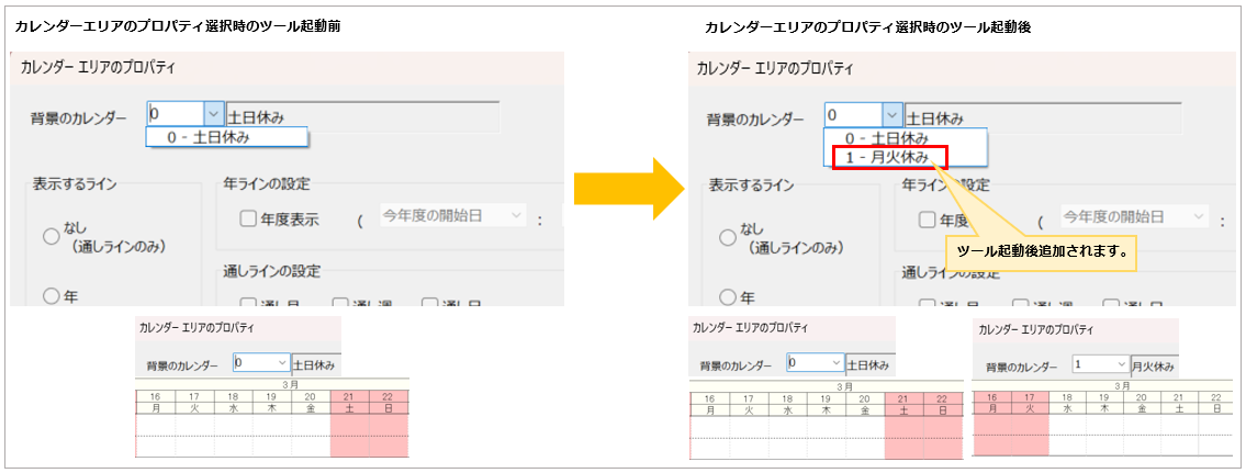 - 別の工程表のカレンダーに合わせて、カレンダー種類を統一させたい