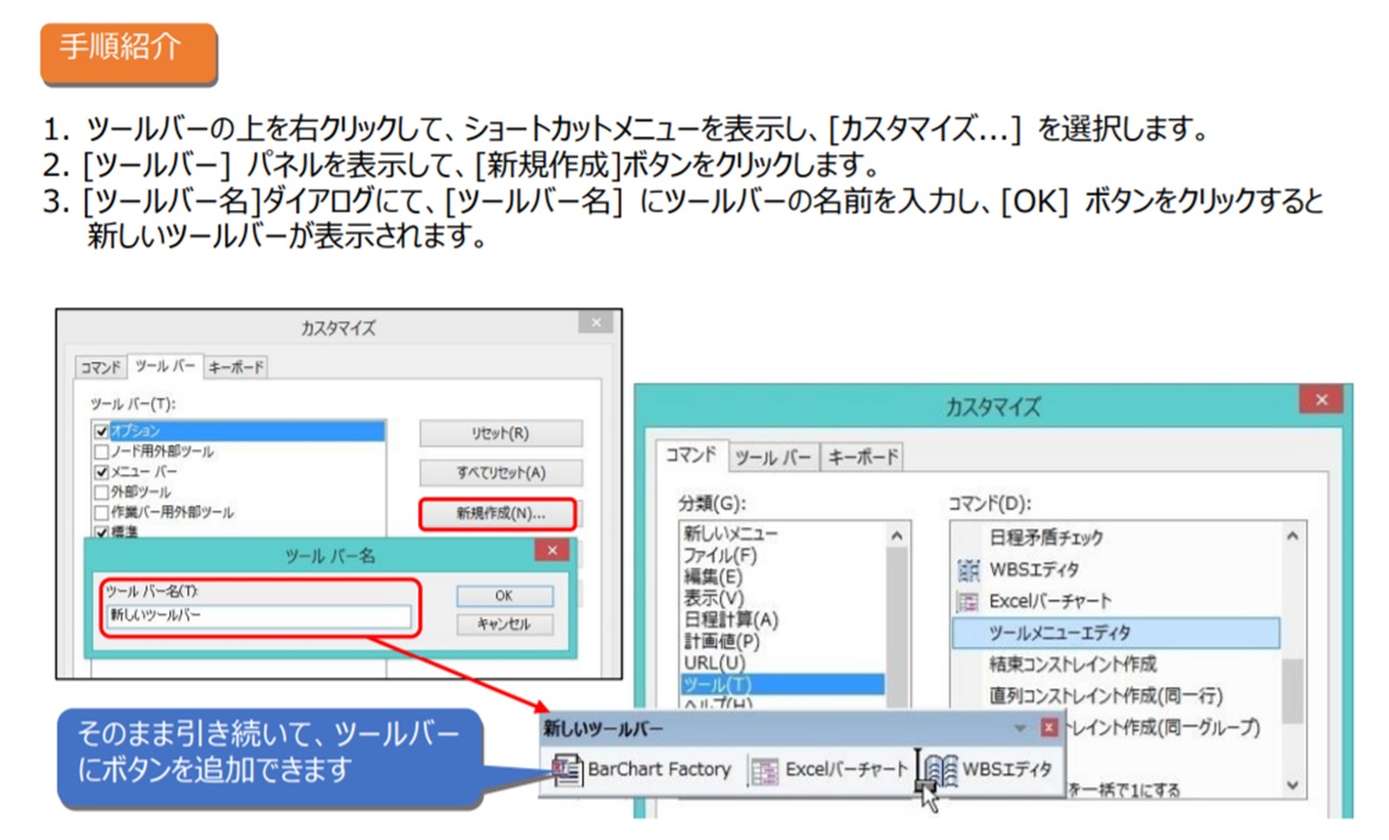 ツールバー自体を、新たに作成・追加する事も出来ます。