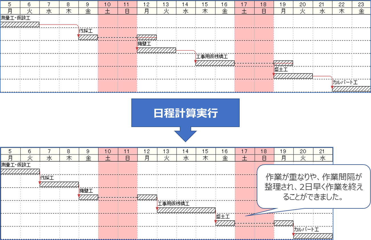 ※「28日」を作業終了とした日程計算
